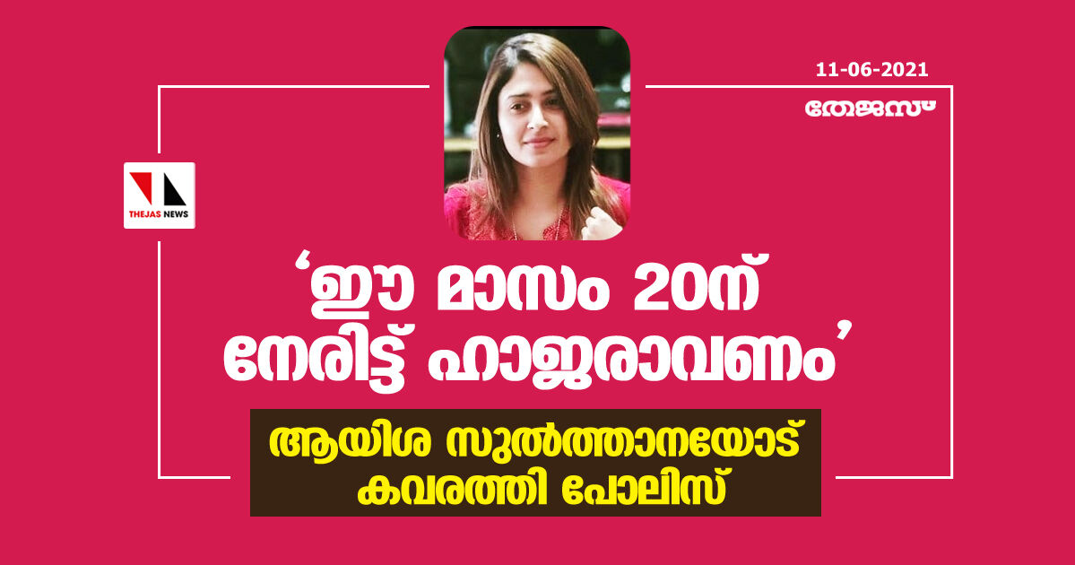 ആയിശ സുല്ത്താനയോട് ഈ മാസം 20ന് നേരിട്ടു ഹാജരാവാന് കവരത്തി പോലിസാണ് നിര്ദേശം നല്കിയത്.
