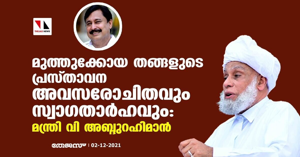 മുത്തുക്കോയ തങ്ങളുടെ പ്രസ്താവന അവസരോചിതവും സ്വാഗതാർഹവും: മന്ത്രി വി അബ്ദുറഹിമാൻ