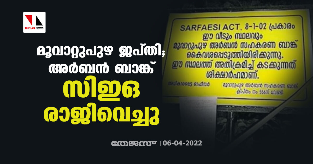 മൂവാറ്റുപുഴ ജപ്തി വിവാദം; അര്ബന് ബാങ്ക് സി ഇ ഒ രാജിവെച്ചു