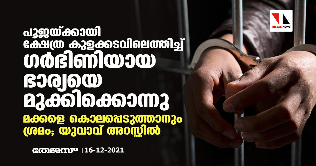 പൂജയ്ക്കായി ക്ഷേത്ര കുളക്കടവിലെത്തിച്ച് ഗര്ഭിണിയായ ഭാര്യയെ മുക്കിക്കൊന്നു; മക്കളെ കൊലപ്പെടുത്താനും ശ്രമം; യുവാവ് അറസ്റ്റില്