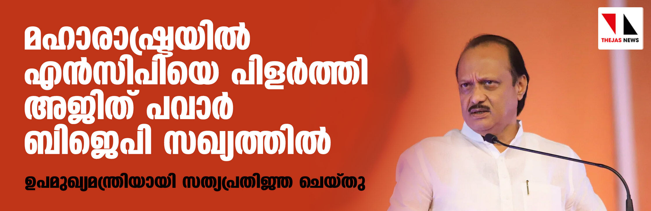 മഹാരാഷ്ട്രയില് എന്സിപിയെ പിളര്ത്തി അജിത് പവാര് ബിജെപി സഖ്യത്തിലേക്ക്; ഉപമുഖ്യമന്ത്രിയായി സത്യപ്രതിജ്ഞ ചെയ്തു
