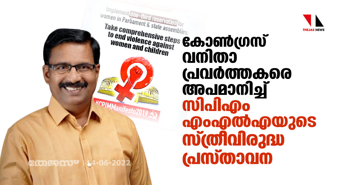 കോണ്ഗ്രസ് വനിതാ പ്രവര്ത്തകരെ അപമാനിച്ച് സിപിഎം എംഎല്എയുടെ സ്ത്രീവിരുദ്ധ പ്രസ്താവന