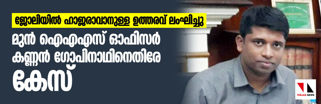 ജോലിയില് ഹാജരാവാനുള്ള ഉത്തരവ് ലംഘിച്ചു; മുന് ഐഎഎസ് ഓഫിസര് കണ്ണന് ഗോപിനാഥിനെതിരേ കേസ്