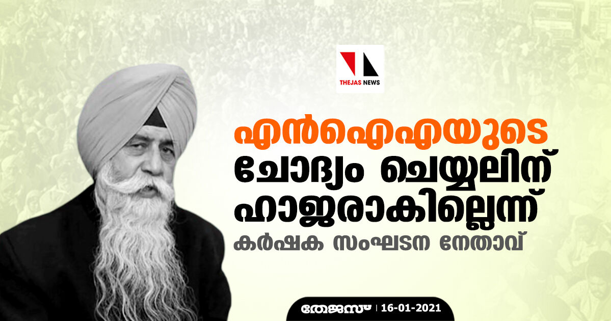 എന്ഐഎയുടെ ചോദ്യം ചെയ്യലിന് ഹാജരാകില്ലെന്ന് കര്ഷക സംഘടന നേതാവ്