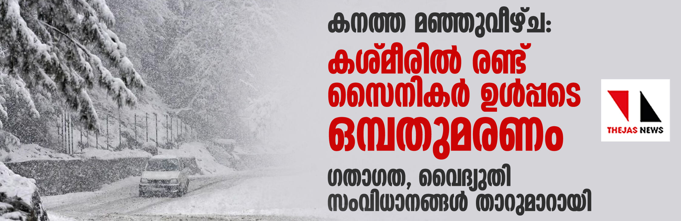 കനത്ത മഞ്ഞുവീഴ്ച: കശ്മീരില് രണ്ട് സൈനികര് ഉള്പ്പടെ ഒമ്പതുമരണം; ഗതാഗത, വൈദ്യുതി സംവിധാനങ്ങള് താറുമാറായി