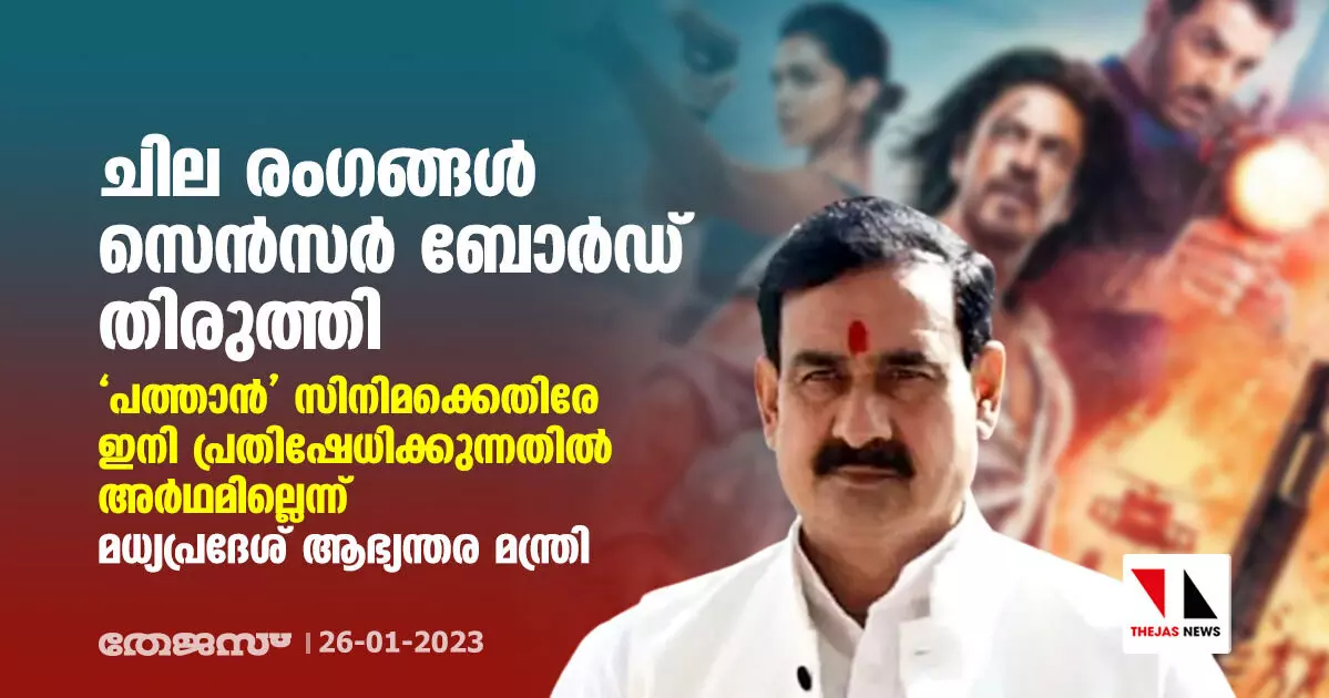 ചില രംഗങ്ങള് സെന്സര് ബോര്ഡ് തിരുത്തി; 'പത്താന്' സിനിമക്കെതിരേ ഇനി പ്രതിഷേധിക്കുന്നതില് അര്ഥമില്ലെന്ന് മധ്യപ്രദേശ് ആഭ്യന്തര മന്ത്രി
