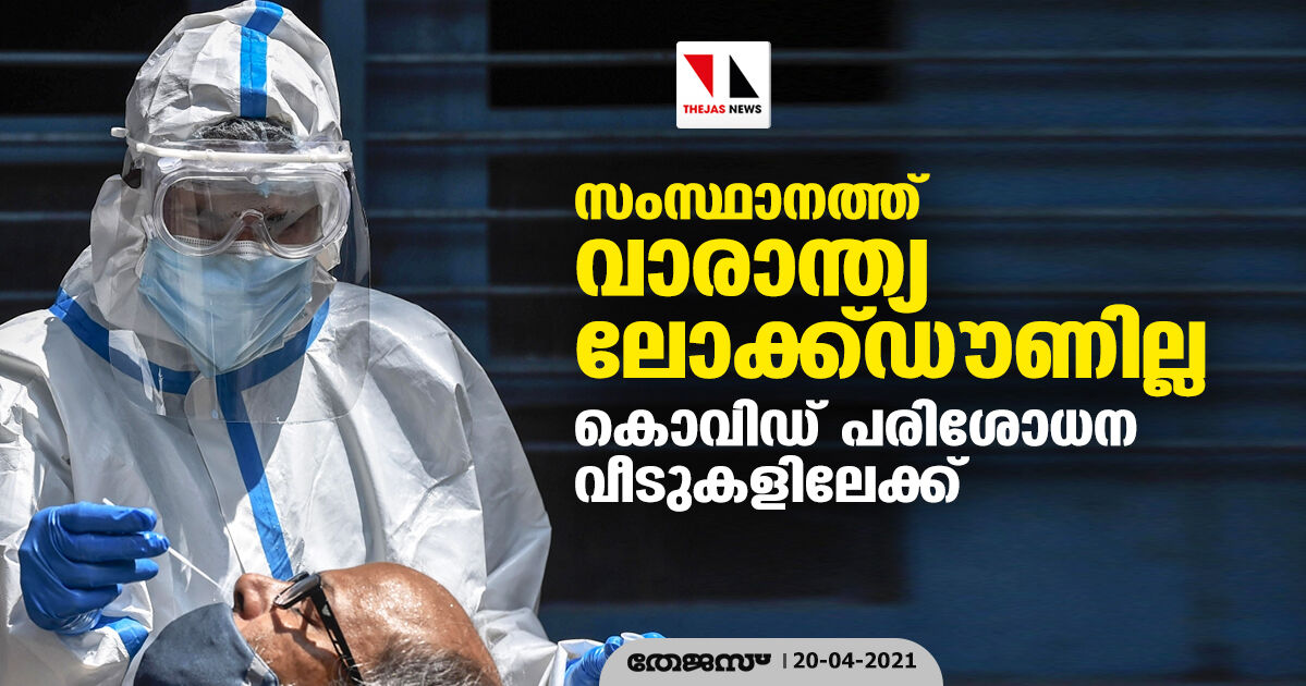 സംസ്ഥാനത്ത് വാരാന്ത്യ ലോക്ക്ഡൗണില്ല, കൊവിഡ് പരിശോധന വീടുകളിലേക്ക്