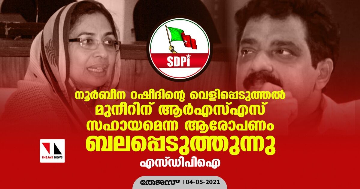നൂര്ബീന റഷീദിന്റെ വെളിപ്പെടുത്തല് മുനീറിന് ആര്എസ്എസ് സഹായമെന്ന ആരോപണം ബലപ്പെടുത്തുന്നു: എസ്ഡിപിഐ