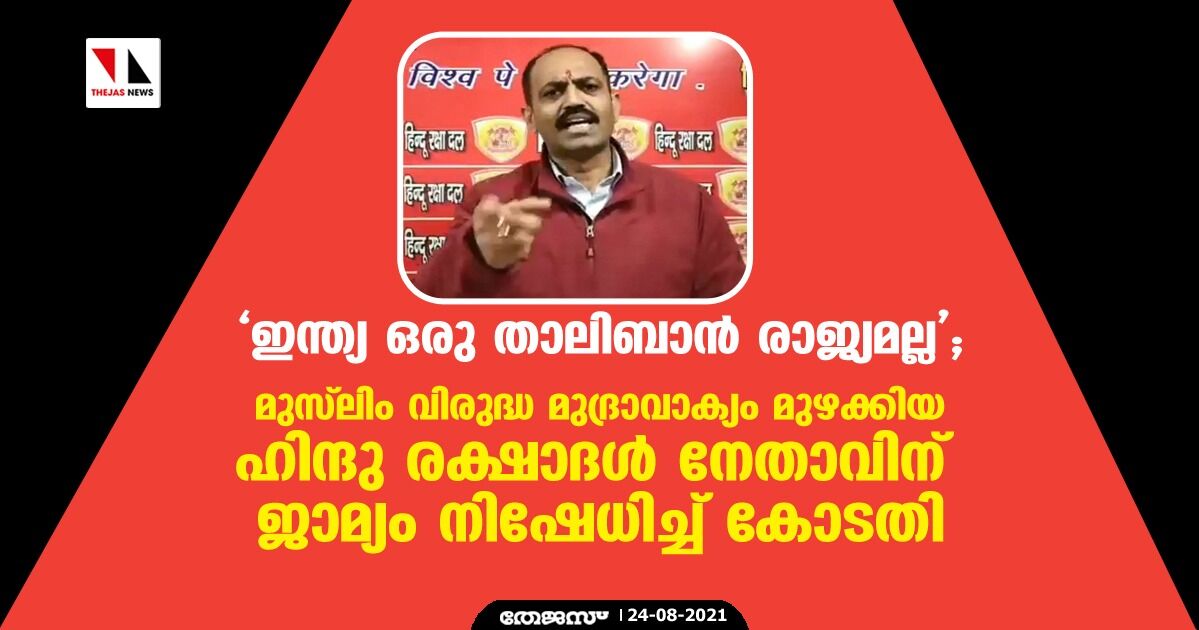 'ഇന്ത്യ ഒരു താലിബാന് രാജ്യമല്ല'; മുസ്ലിം വിരുദ്ധ മുദ്രാവാക്യം മുഴക്കിയ ഹിന്ദു രക്ഷാദള് നേതാവിന് ജാമ്യം നിഷേധിച്ച് കോടതി