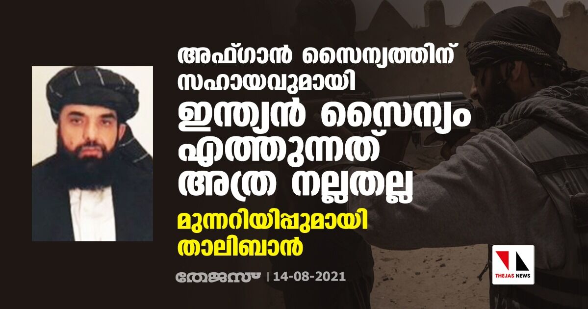 അഫ്ഗാൻ സൈന്യത്തിന് സഹായവുമായി ഇന്ത്യൻ സൈന്യം എത്തുന്നത് അത്ര നല്ലതല്ല; മുന്നറിയിപ്പുമായി താലിബാൻ