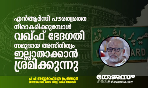എന്ആര്സി പൗരത്വത്തെയാണ് നിരാകരിക്കുമ്പോള് വഖ്ഫ് ഭേദഗതി സമുദായ അസ്തിത്വം ഇല്ലാതാക്കാന് ശ്രമിക്കുന്നു