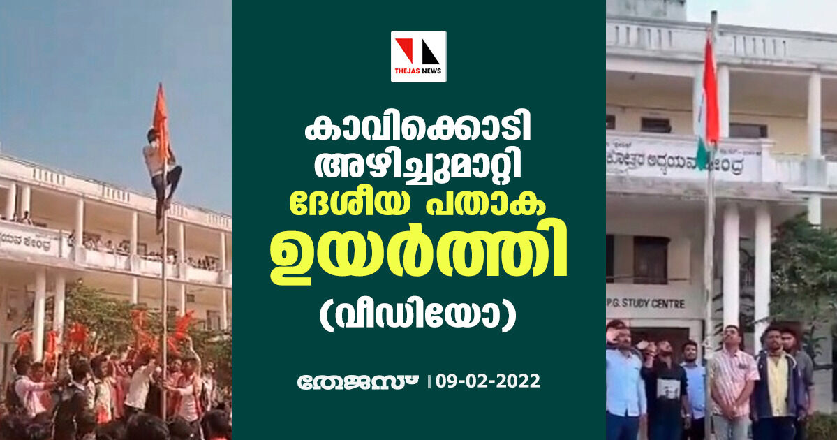 കാവിക്കൊടി അഴിച്ചുമാറ്റി ദേശീയ പതാക ഉയര്ത്തി (വീഡിയോ)