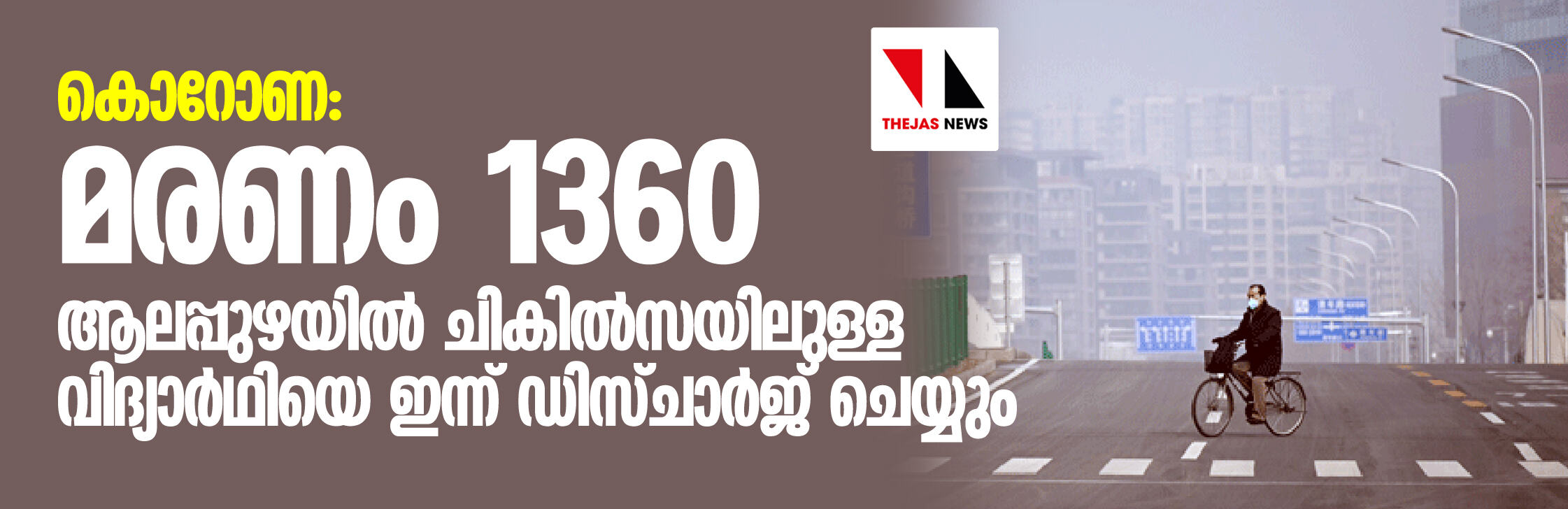 കൊറോണ: മരണം 1360, ആലപ്പുഴയില് ചികിത്സയിലുള്ള വിദ്യാര്ത്ഥിയെ ഇന്ന് ഡിസ്ചാര്ജ് ചെയ്യും