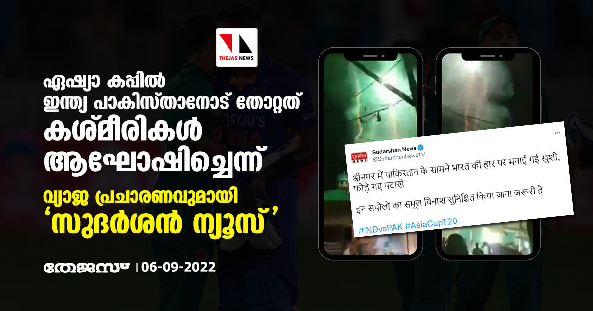 ഏഷ്യാ കപ്പില് ഇന്ത്യ പാകിസ്താനോട് തോറ്റത് കശ്മീരികള് ആഘോഷിച്ചെന്ന്; വ്യാജ പ്രചാരണവുമായി 'സുദര്ശന് ന്യൂസ്'
