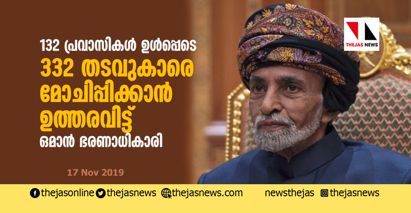 ഒമാന്റെ 49ാം ദേശീയ ദിനത്തോട് അനുബന്ധിച്ചാണ് പ്രഖ്യാപനം. വിവിധ കേസുകളില് ശിക്ഷിക്കപ്പെട്ടിട്ടുള്ള 332 പേരെയാണ് മോചിപ്പിക്കുന്നത്.