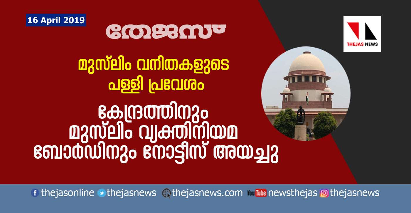 മുസ്ലിം വനിതകളുടെ പള്ളി പ്രവേശം; കേന്ദ്രത്തിനും മുസ്ലിം വ്യക്തിനിയമ ബോര്ഡിനും നോട്ടീസ് അയച്ചു