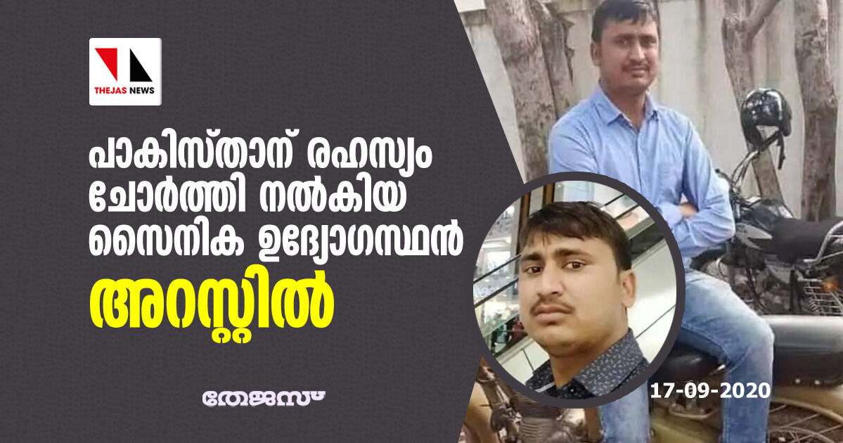 പാകിസ്താന് രഹസ്യം ചോര്ത്തി നല്കിയ സൈനിക ഉദ്യോഗസ്ഥന് അറസ്റ്റില്