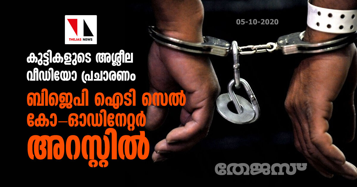 കുട്ടികളുടെ അശ്ലീല വീഡിയോ പ്രചാരണം; ബിജെപി ഐടി സെല് കോ-ഓഡിനേറ്റര് അറസ്റ്റില്