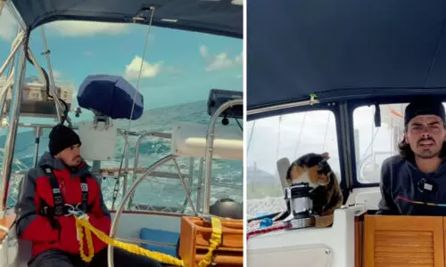 കോര്പറേറ്റ് ജോലി രാജിവച്ച് പൂച്ചയുമായി ശാന്തസമുദ്രത്തില് കറങ്ങി യുവാവ് (വീഡിയോ)