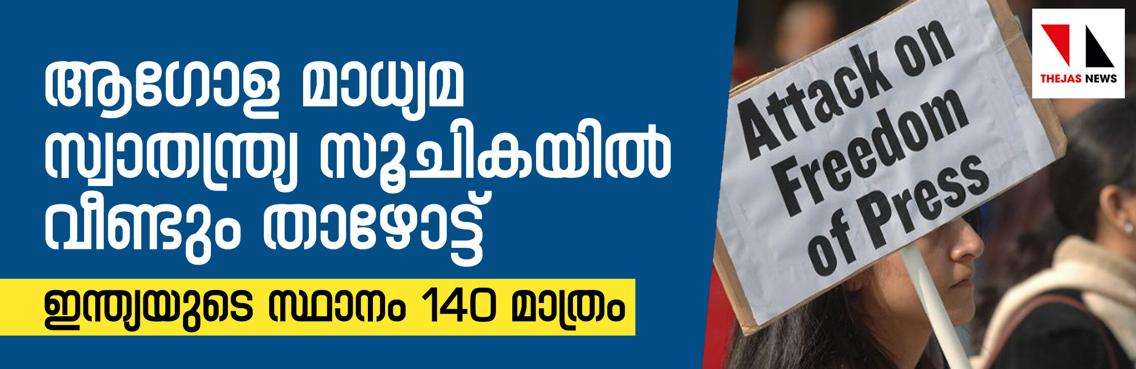ആഗോള മാധ്യമ സ്വാതന്ത്ര്യ സൂചികയില് വീണ്ടും താഴോട്ട്; ഇന്ത്യയുടെ സ്ഥാനം 140 മാത്രം