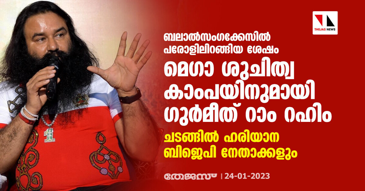ബലാല്സംഗക്കേസില് പരോളിലിറങ്ങിയ ശേഷം മെഗാ ശുചിത്വ കാംപയിനുമായി ഗുര്മീത് റാം റഹിം; ചടങ്ങില് ഹരിയാന ബിജെപി നേതാക്കളും
