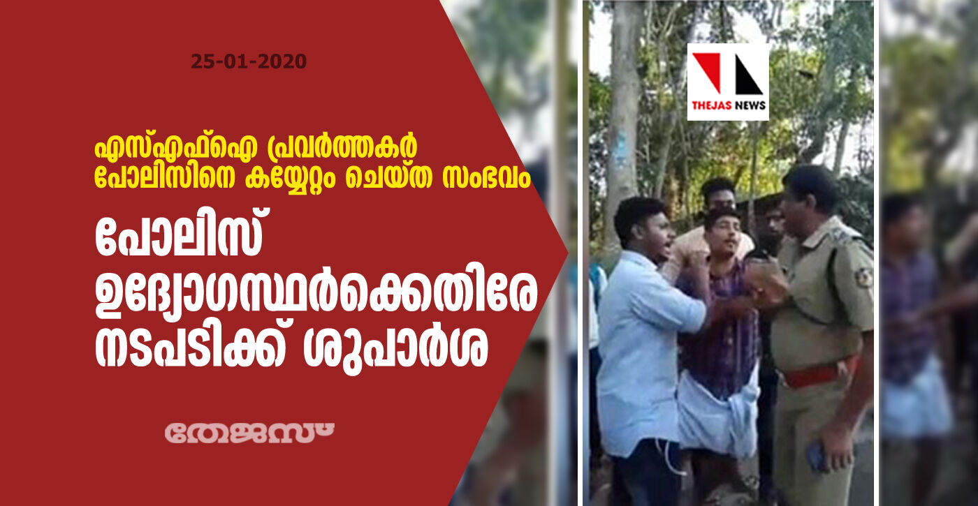 എസ്എഫ്ഐ പ്രവര്ത്തകര് പോലിസിനെ കയ്യേറ്റം ചെയ്ത സംഭവം: പോലിസ് ഉദ്യോഗസ്ഥര്ക്കെതിരേ നടപടിക്ക് ശുപാര്ശ