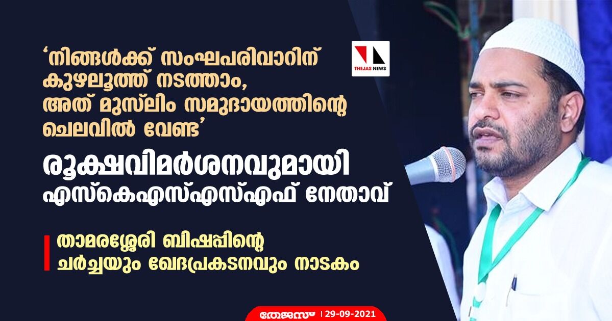 'നിങ്ങള്ക്ക് സംഘപരിവാറിന് കുഴലൂത്ത് നടത്താം, അത് മുസ്ലിം സമുദായത്തിന്റെ ചെലവില് വേണ്ട'; രൂക്ഷവിമര്ശനവുമായി എസ്കെഎസ്എസ്എഫ് നേതാവ്