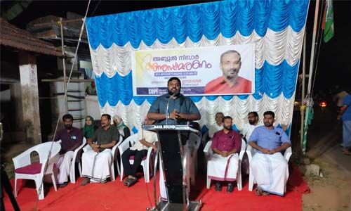 അപരാധികള് രക്ഷപ്പെടുകയും നിരപരാധികള് ശിക്ഷിക്കപ്പെടുകയും ചെയ്യുന്ന അവസ്ഥയാണ് ഇന്ന് നാം കാണുന്നത്. ഒരു രാജ്യം ഇരട്ട നീതി എന്ന രീതിയിലേക്കാണ് രാജ്യം നീങ്ങിക്കൊണ്ടിരിക്കുന്നത്. ജുഡീഷ്യറി പോലും ഫാഷിസ്റ്റുവല്ക്കരിക്കുന്ന അവസ്ഥയിലേക്കാണ് രാജ്യം നീങ്ങുന്നത്. ഫാഷിസ്റ്റ് വിരുദ്ധക്കെതിരേ പ്രവര്ത്തിക്കുകയാണ് ഒരോ പ്രവര്ത്തകരുടെയും പൗരന്മാരുടേയും ബാധ്യത. രാജ്യത്ത് ഏകാധിപത്യ ഫാഷിസം തകര്ക്കപ്പെടേണ്ടതാണന്നും അദ്ദേഹം അഭിപ്രായപ്പെട്ടു. പട്ടാമ്പി മണ്ഡലം കമ്മറ്റി പട്ടാമ്പി മരുതൂര് സെന്ററില് സംഘടിപ്പിച്ച അനുസ്മരണ യോഗത്തില് ജില്ലാ പ്രസിഡന്റ് ഷെഹീര് ചാലിപ്പുറം അനുസ്മരണ പ്രഭാഷണം നടത്തി.