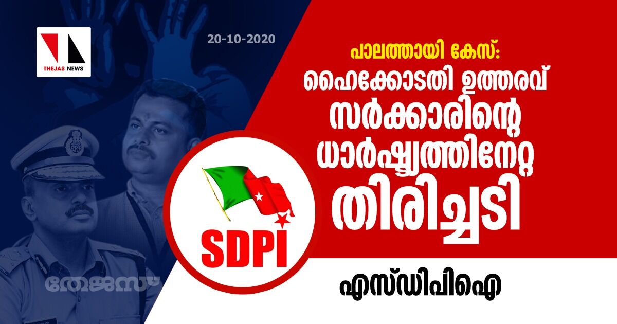 പാലത്തായി കേസ്: ഹൈക്കോടതി ഉത്തരവ് സര്ക്കാരിന്റെ ധാര്ഷ്ട്യത്തിനേറ്റ തിരിച്ചടി- എസ്ഡിപിഐ
