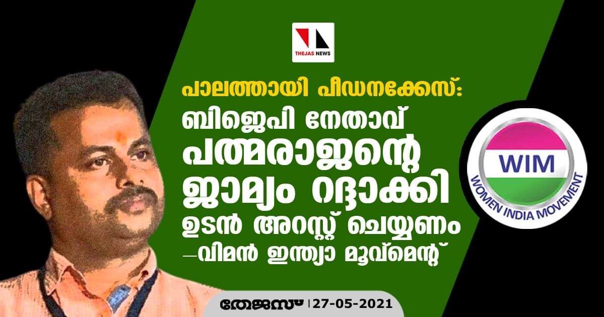 പാലത്തായി ബാലികാ പീഡനക്കേസ്:ബിജെപി നേതാവ് പത്മരാജന്റെ ജാമ്യം റദ്ദാക്കി ഉടന് അറസ്റ്റ് ചെയ്യണം- വിമന് ഇന്ത്യാ മൂവ്മെന്റ്