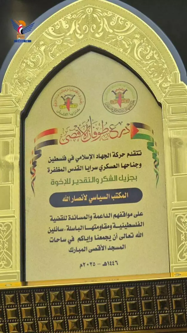 അന്സാറുല്ല പോളിറ്റ് ബ്യൂറോയെ ആദരിച്ച് ഫലസ്തീനിയന് ഇസ്ലാമിക് ജിഹാദ്