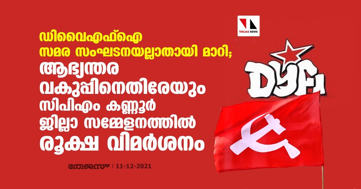 ഡിവൈഎഫ്ഐ സമര സംഘടനയല്ലാതായി മാറി; ആഭ്യന്തര വകുപ്പിനെതിരേയും സിപിഎം കണ്ണൂര് ജില്ലാ സമ്മേളനത്തിൽ രൂക്ഷ വിമർശനം