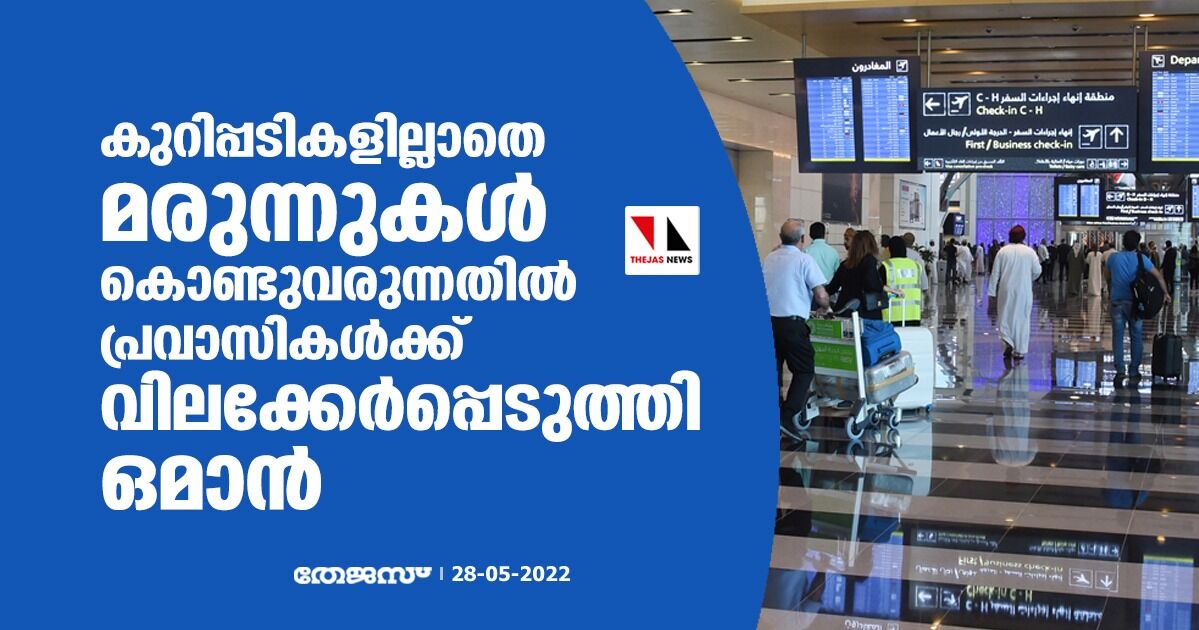 കുറിപ്പടികളില്ലാതെ മരുന്നുകള് കൊണ്ടുവരുന്നത് യാത്ര വൈകാനും മരുന്നുകള് റോയല് ഒമാന് പോലിസ് പിടിച്ചെടുക്കാനും കാരണമാവുമെന്ന് എയര്പോര്ട്ട് അധികൃതര്