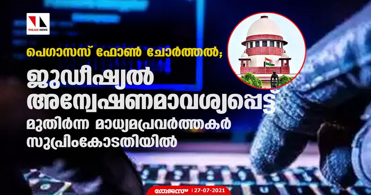 പെഗാസസ് ഫോണ് ചോര്ത്തല്: ജുഡീഷ്യല് അന്വേഷണമാവശ്യപ്പെട്ട് മുതിര്ന്ന മാധ്യമപ്രവര്ത്തകര് സുപ്രിംകോടതിയില്