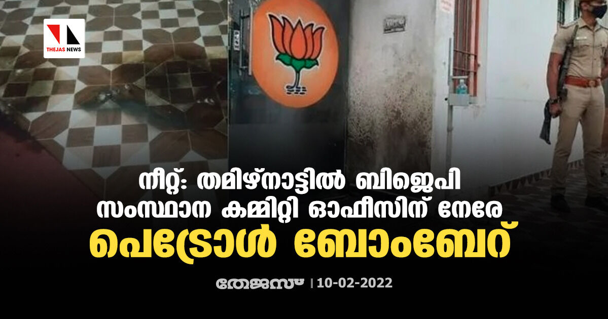 നീറ്റ്: തമിഴ്നാട്ടില് ബിജെപി സംസ്ഥാന കമ്മിറ്റി ഓഫീസിന് നേരേ പെട്രോള് ബോംബേറ്