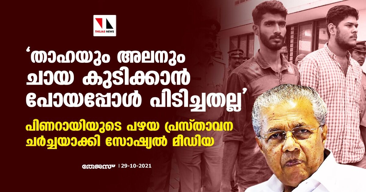 'താഹയും അലനും ചായ കുടിക്കാന് പോയപ്പോള് പിടിച്ചതല്ല'; പിണറായിയുടെ പഴയ പ്രസ്താവന ചര്ച്ചയാക്കി സോഷ്യല് മീഡിയ