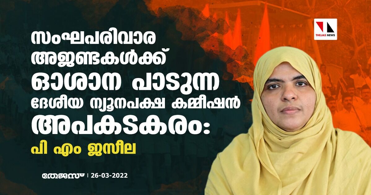 സംഘപരിവാര അജണ്ടകൾക്ക് ഓശാന പാടുന്ന ദേശീയ ന്യുനപക്ഷ കമ്മീഷൻ അപകടകരം: പി എം ജസീല
