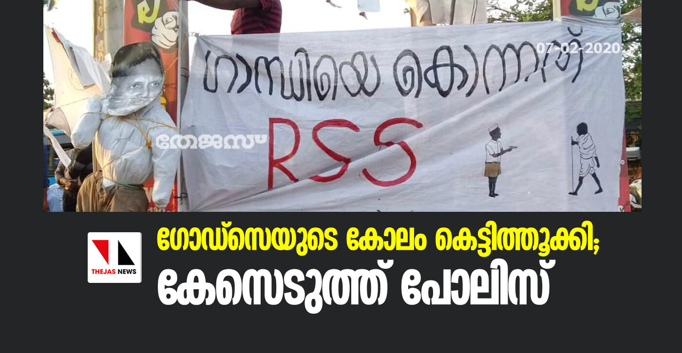 ഗോഡ്സെയുടെ കോലം കെട്ടിത്തൂക്കി; കേസെടുത്ത് പോലിസ്