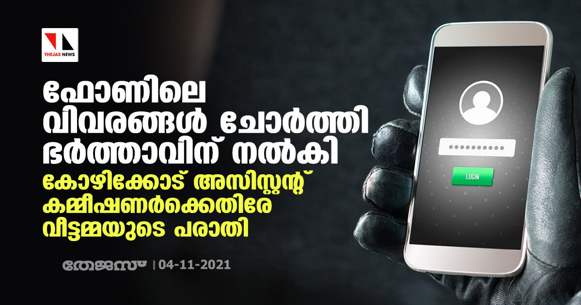 ഫോണിലെ വിവരങ്ങള് ചോര്ത്തി ഭര്ത്താവിന് നല്കി; കോഴിക്കോട് അസിസ്റ്റന്റ് കമ്മീഷണർക്കെതിരേ വീട്ടമ്മയുടെ പരാതി