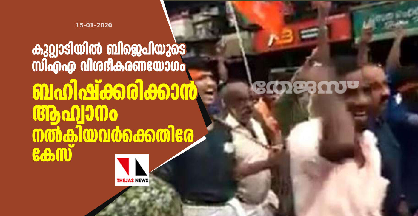 കുറ്റിയാടിയില് ബിജെപിയുടെ സിഎഎ വിശദീകരണയോഗം ബഹിഷ്ക്കരിക്കാന് ആഹ്വാനം നല്കിയവര്ക്കെതിരേ കേസ്