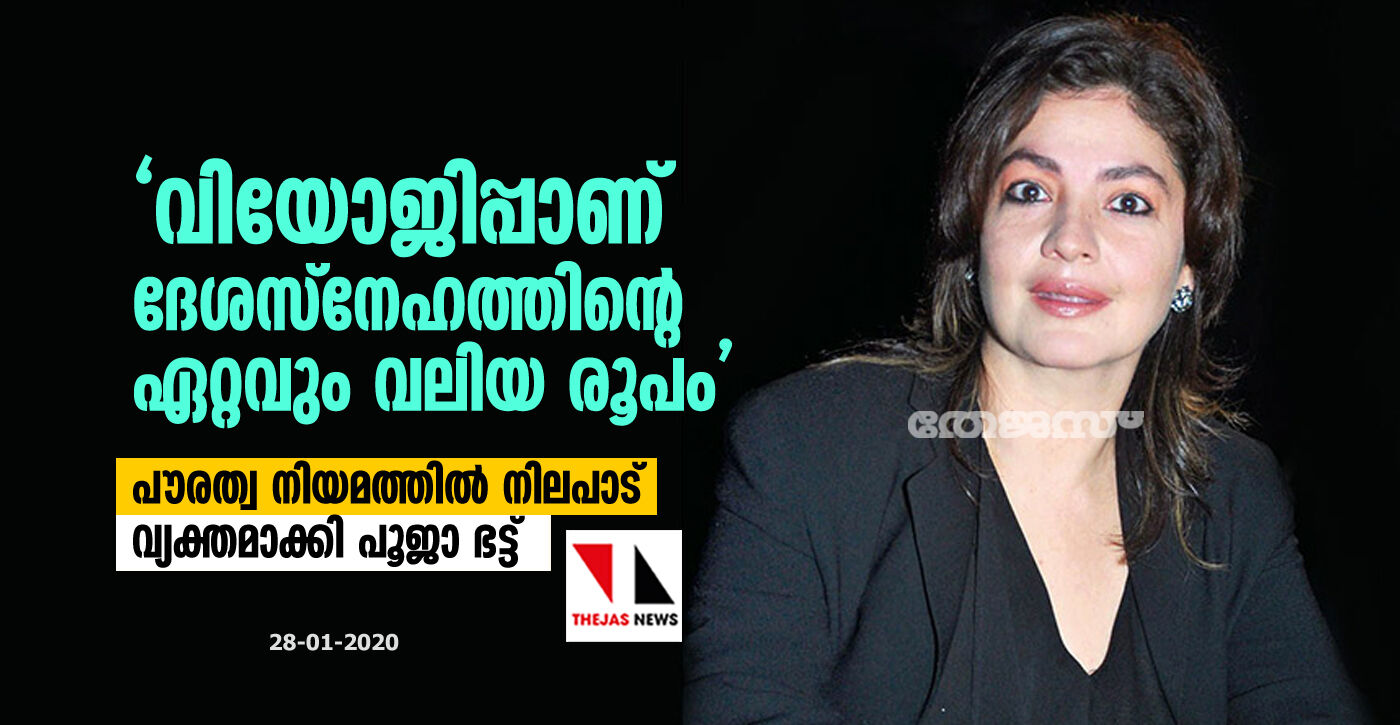 'വിയോജിപ്പാണ് ദേശസ്നേഹത്തിന്റെ ഏറ്റവും വലിയ രൂപം'; പൗരത്വ നിയമത്തില് നിലപാട് വ്യക്തമാക്കി പൂജാ ഭട്ട്