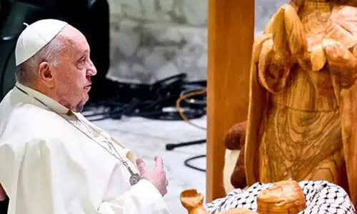 'മതി യുദ്ധങ്ങള്, അക്രമം മതി!'; കഫിയയില് കിടത്തിയ ഉണ്ണിയേശുവുമായി മാര്പാപ്പ