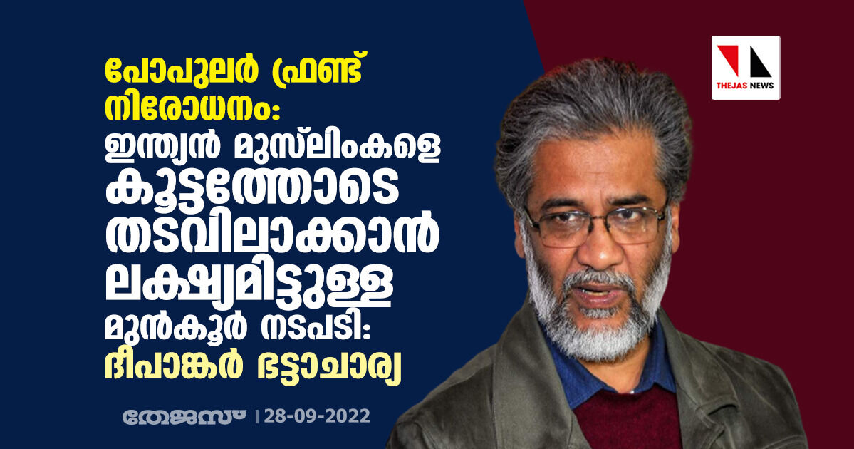 പോപുലര് ഫ്രണ്ട് നിരോധനം: ഇന്ത്യന് മുസ്ലിംകളെ കൂട്ടത്തോടെ തടവിലാക്കാന് ലക്ഷ്യമിട്ടുള്ള മുന്കൂര് നടപടി- ദീപാങ്കര് ഭട്ടാചാര്യ