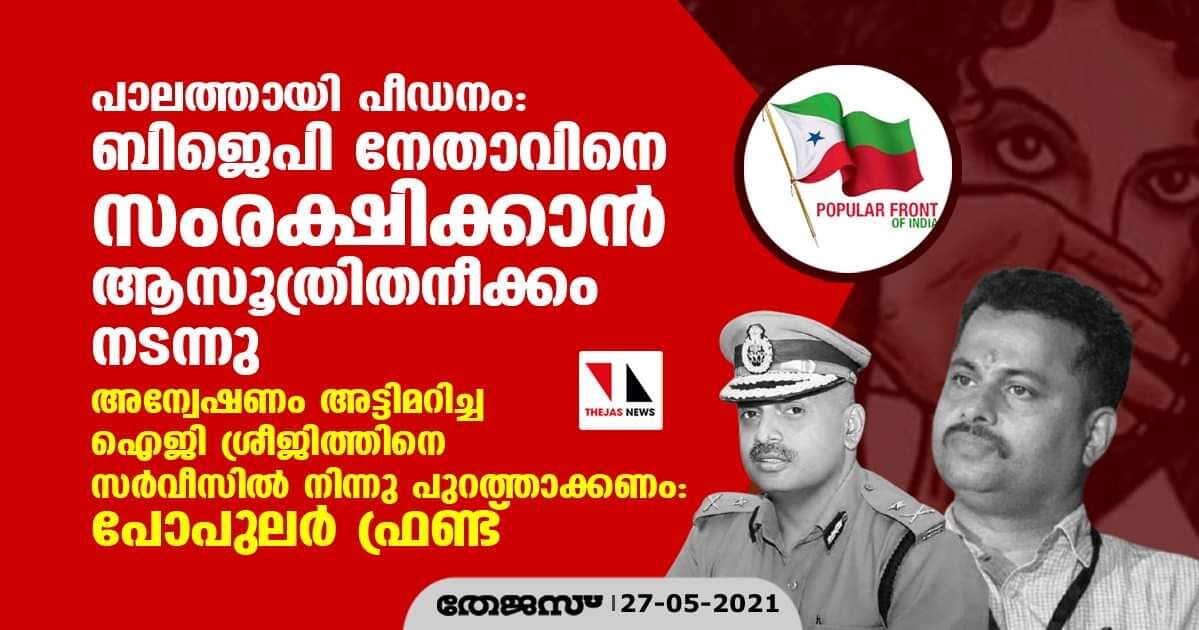 പാലത്തായി പീഡനം: ബിജെപി നേതാവിനെ സംരക്ഷിക്കാൻ ആസൂത്രിതനീക്കം നടന്നതായി ബോധ്യപ്പെട്ടു; അന്വേഷണം അട്ടിമറിച്ച ഐജി ശ്രീജിത്തിനെ സർവീസിൽ നിന്നു പുറത്താക്കണമെന്ന് പോപുലർ ഫ്രണ്ട്