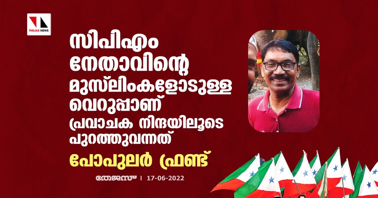 സിപിഎം നേതാവിന്റെ മുസ്ലിംകളോടുള്ള വെറുപ്പാണ് പ്രവാചക നിന്ദയിലൂടെ പുറത്തുവന്നത്: പോപുലര് ഫ്രണ്ട്