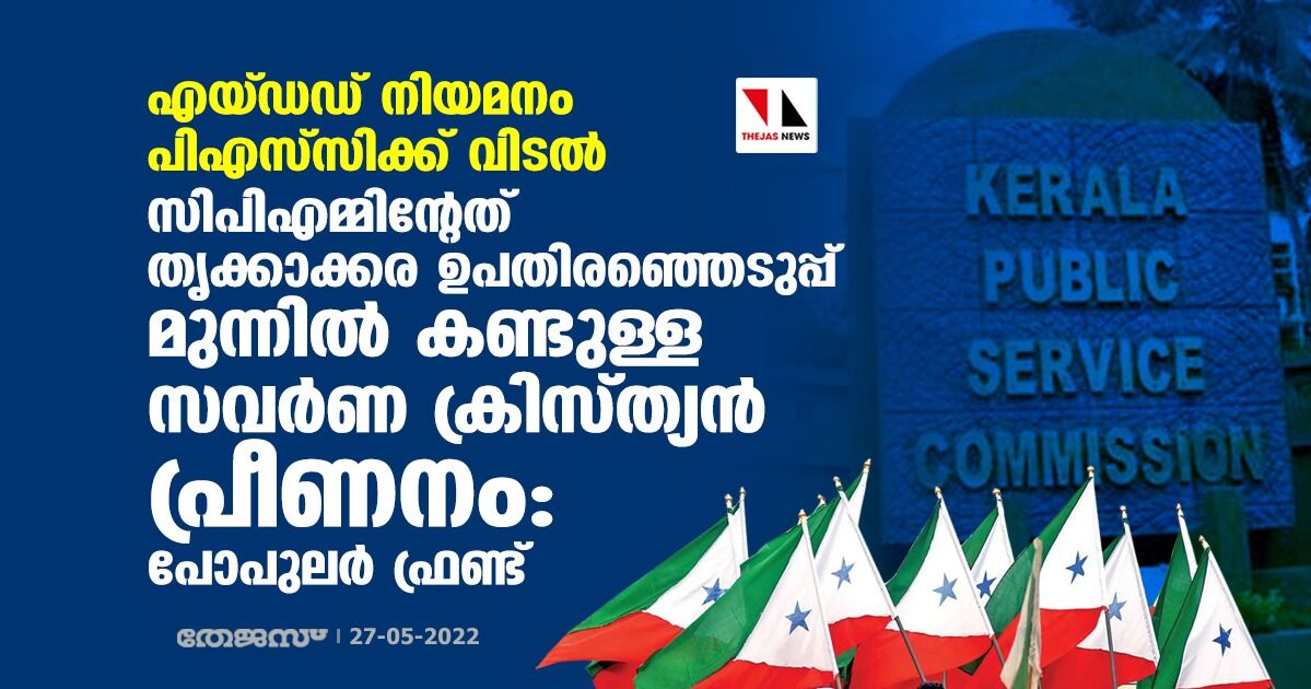 എയ്ഡഡ് നിയമനം പിഎസ്സിക്ക് വിടല്: സിപിഎമ്മിന്റേത് തൃക്കാക്കര ഉപതിരഞ്ഞെടുപ്പ് മുന്നില് കണ്ടുള്ള സവര്ണ ക്രിസ്ത്യന് പ്രീണനമെന്ന് പോപുലര് ഫ്രണ്ട്