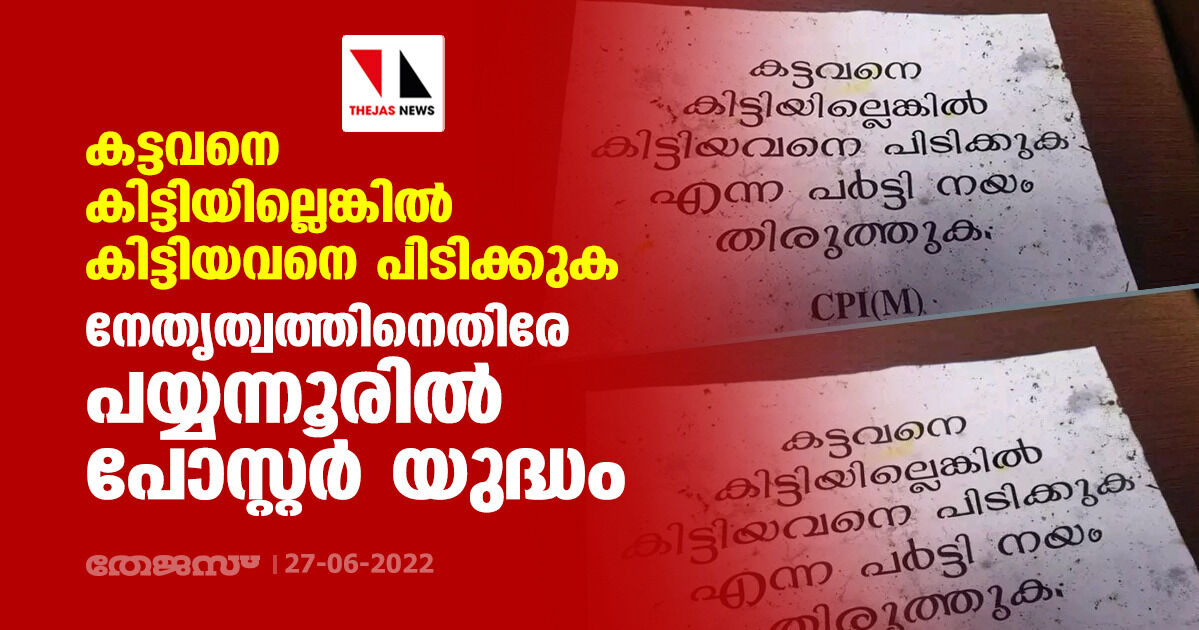കട്ടവനെ കിട്ടിയില്ലെങ്കിൽ കിട്ടിയവനെ പിടിക്കുക; നേതൃത്വത്തിനെതിരേ പയ്യന്നൂരിൽ പോസ്റ്റർ യുദ്ധം