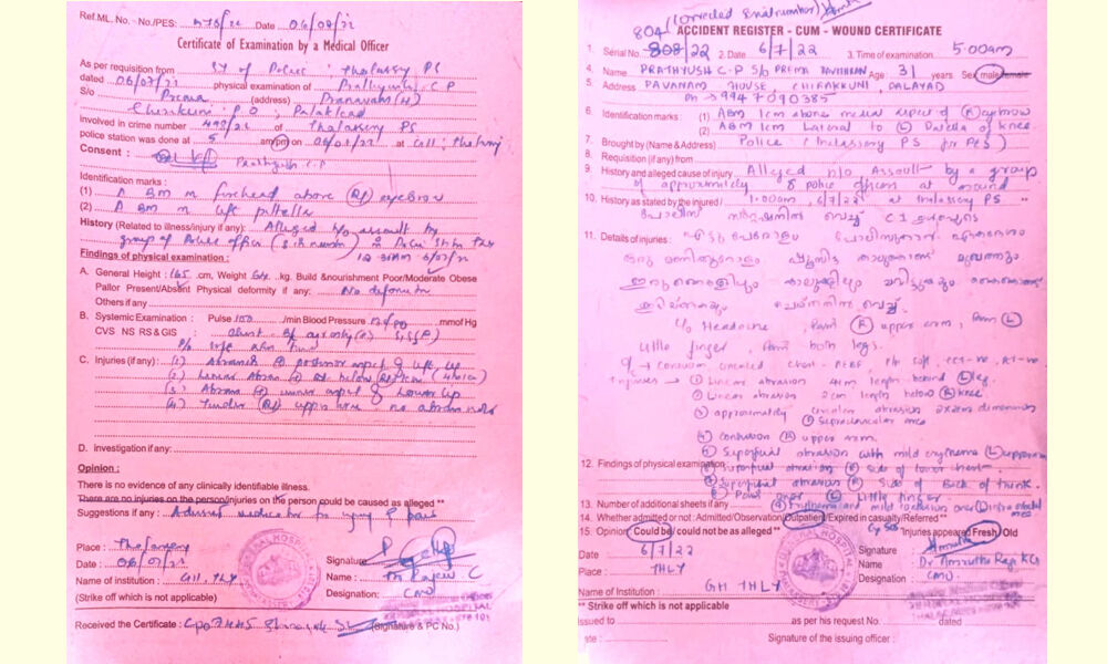 പ്രത്യുഷിന് ദേഹമാസകലം പരിക്കേറ്റു എന്ന വൂണ്ട് സർട്ടിഫിക്കറ്റിൽ വ്യക്തമാക്കുന്നു. ഇടത് കണ്ണിന് താഴെ രക്തം കല്ലിച്ച നിലയിലാണ്. ഇവിടെ ചതവുണ്ട്. ഇടത് കാലിനും വലത് മുട്ടിന് താഴെയും തോളിനും പരിക്കേറ്റ പാടുകളുണ്ട്. വലത് കൈയ്ക്ക് ചതവും, ഇടത് കൈയിലും നെഞ്ചിലും പുറക് വശത്തും ഉരഞ്ഞ പാടുകളും ഉണ്ട്. പ്രത്യുഷിനെ പോലിസ് മുഷ്ടി ചുരുട്ടി ഇടിച്ചെന്നും ബൂട്ട് കൊണ്ട് ചവിട്ടി എന്നുമായിരുന്നു ഭാര്യയുടെ പരാതി. ദമ്പതികളെ പോലിസ് ആക്രമിച്ചെന്ന പരാതി ശരിവയ്ക്കുന്ന തരത്തിലുള്ളതാണ് മെഡിക്കൽ സര്ട്ടിഫിക്കറ്റിലെ വിവരങ്ങൾ.