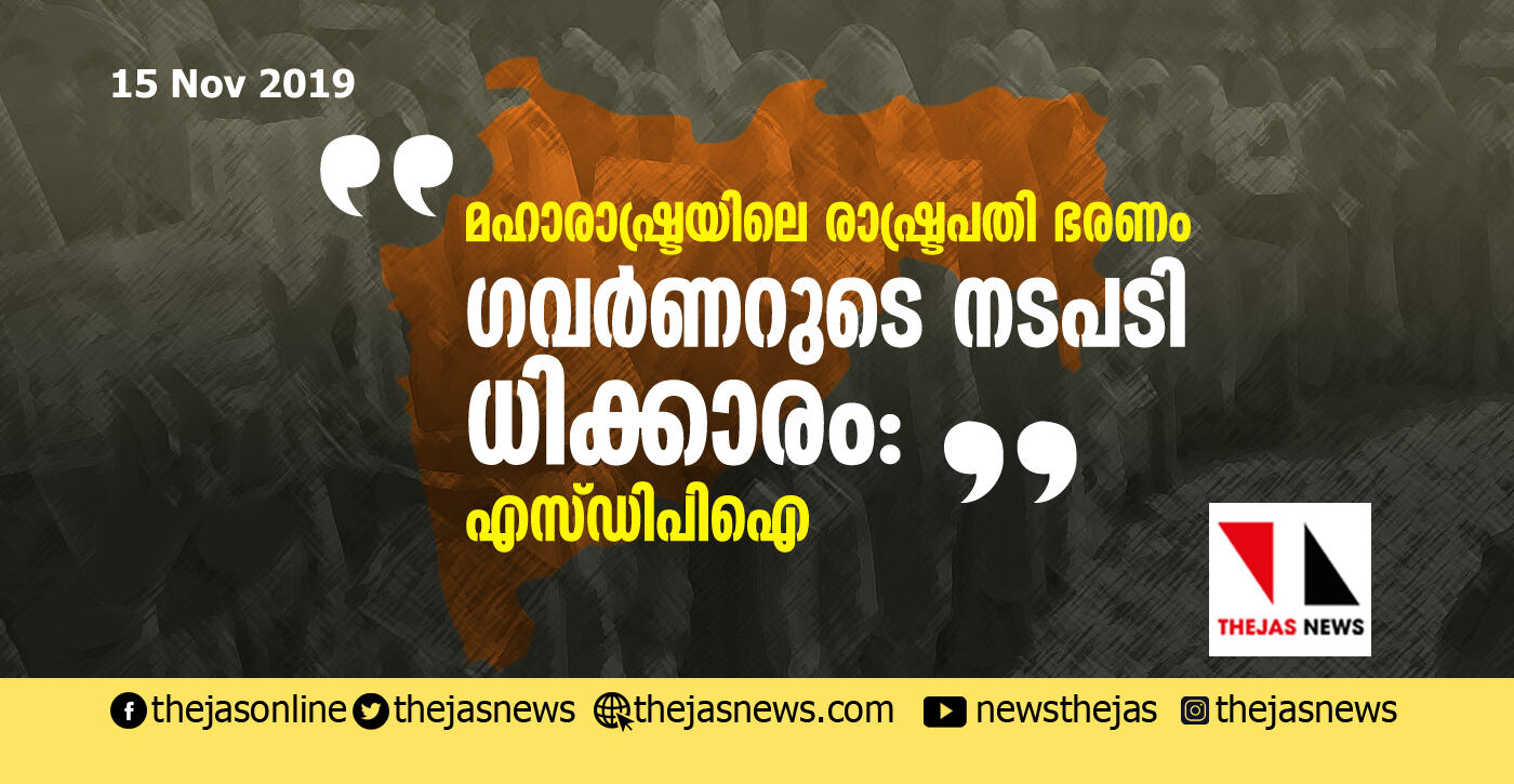 മഹാരാഷ്ട്രയിലെ രാഷ്ട്രപതി ഭരണം: ഗവര്ണറുടെ നടപടി ധിക്കാരം- എസ്ഡിപിഐ