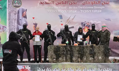 ''ചരിത്രം മാറ്റാന് നമുക്ക് കഴിയും'': ആറ് ഇസ്രായേലി തടവുകാരെ കൈമാറി ഹമാസ്; 602 ഫലസ്തീനികളെ ഇസ്രായേല് വിട്ടയക്കണം (video)